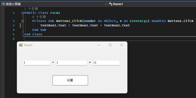 TextBox3.Text = TextBox1.Text + TextBox2.Text