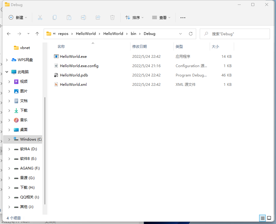 其中,HelloWorld.exe就是你需要的可执行文件。把它复制出来,甚至放到其他电脑上也能运行。当然,前提得是Windows电脑。